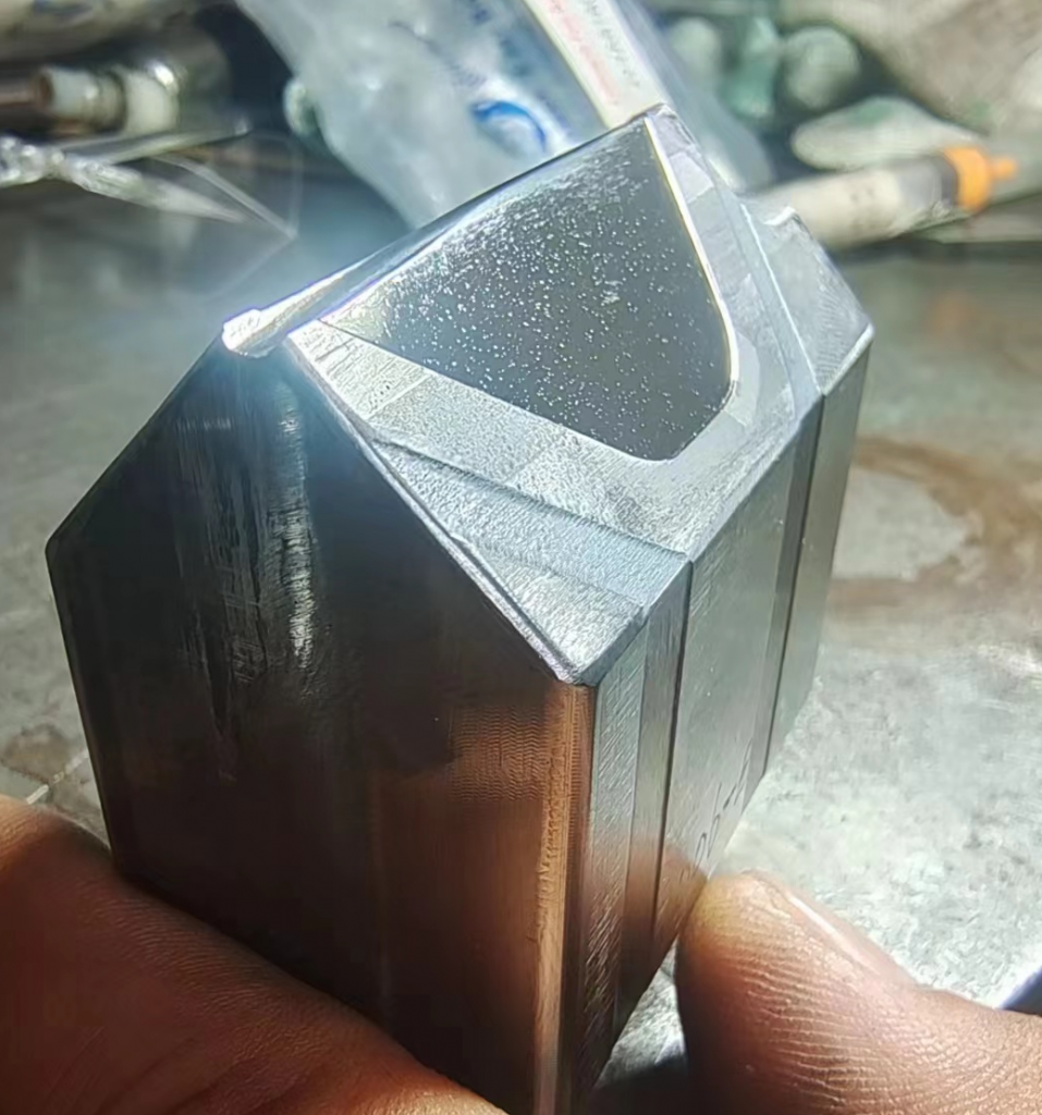 還有一位網(wǎng)友,他是注塑尼龍高透產(chǎn)品的,現(xiàn)在用的是S136模具鋼,但是做不了多少產(chǎn)品,模具就被沖出麻點了(如上圖),如果重新拋光,尺寸又不對了,他的這個零件干了幾萬個產(chǎn)品,模具就會出現(xiàn)這個問題,想找一款模具鋼,價格比現(xiàn)在那個S136便宜些,鏡面拋光效果又要好的材料,問有沒有。
